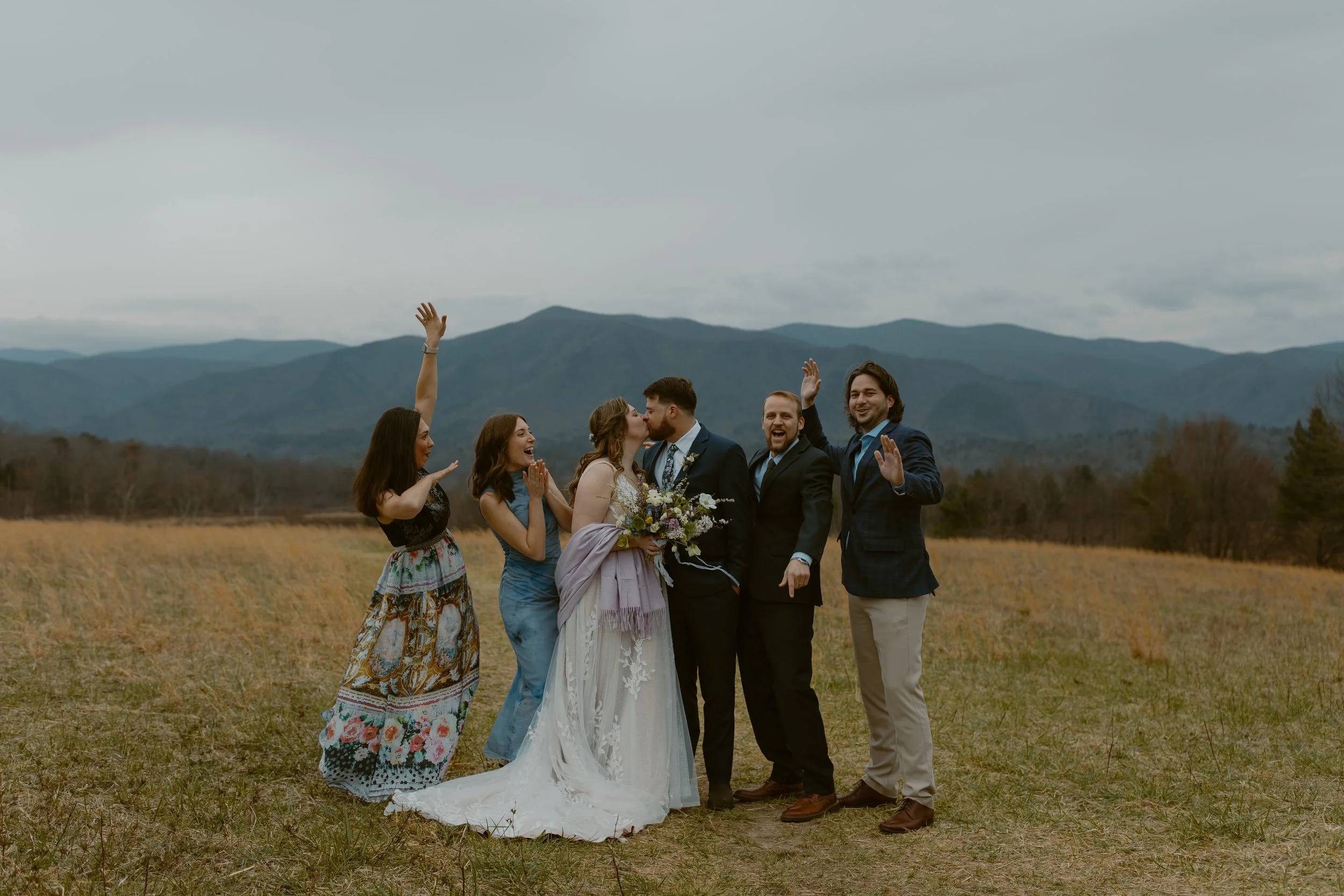 Nick & Alli are two adventurers at heart who dreamed of a quiet, beautiful day with their closest friends by their side — something peaceful with a stunning mountain backdrop. We knew Cades Cove in the Smoky Mountains would be the perfect spot to bring that vision to life. 🌿