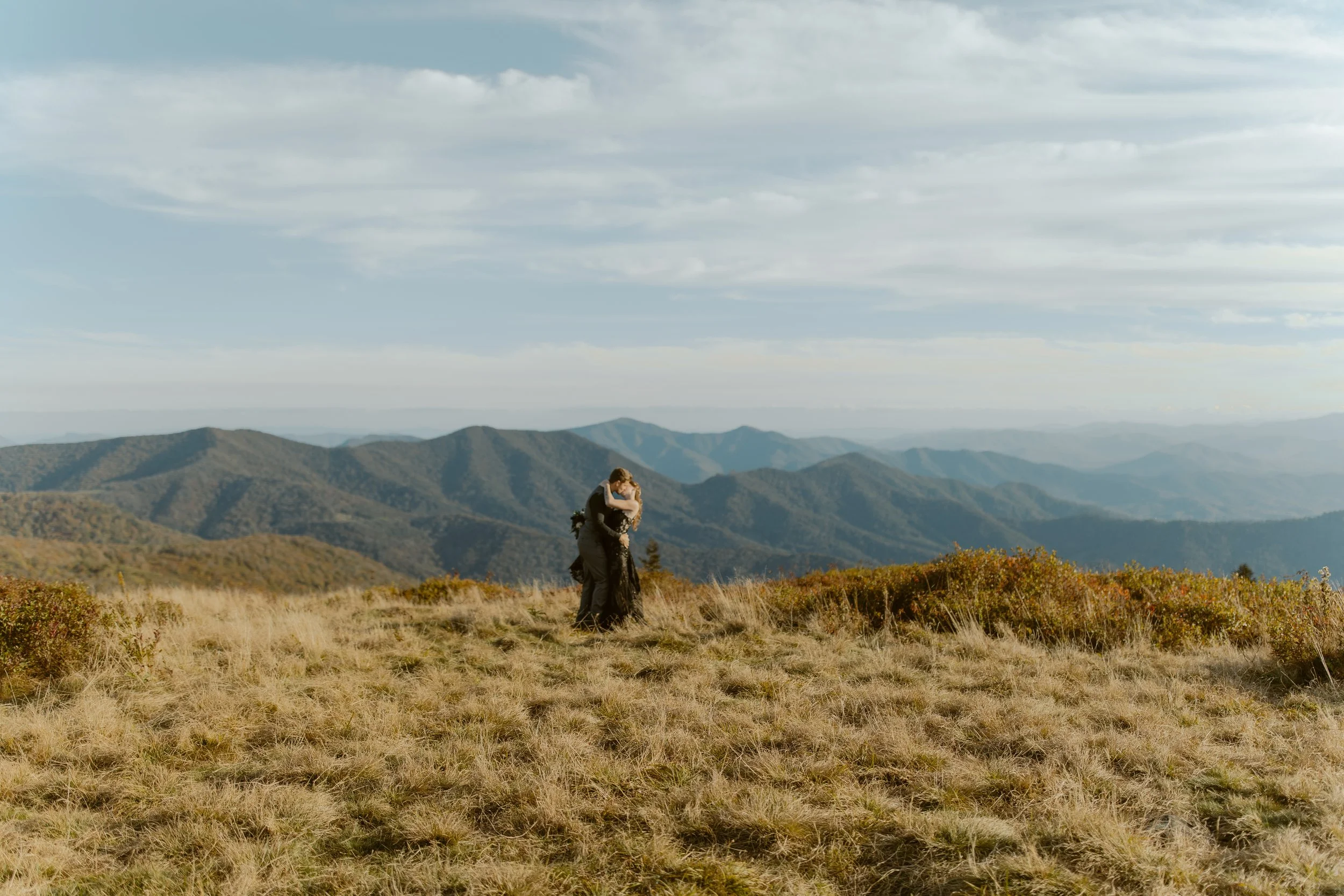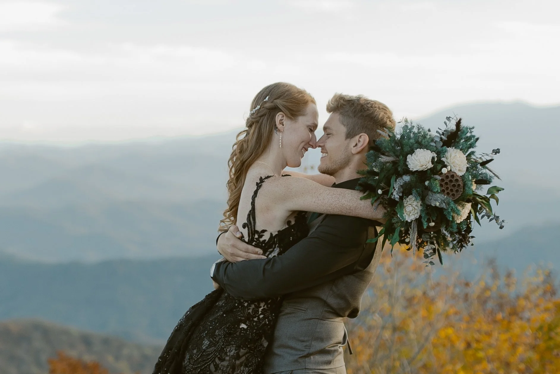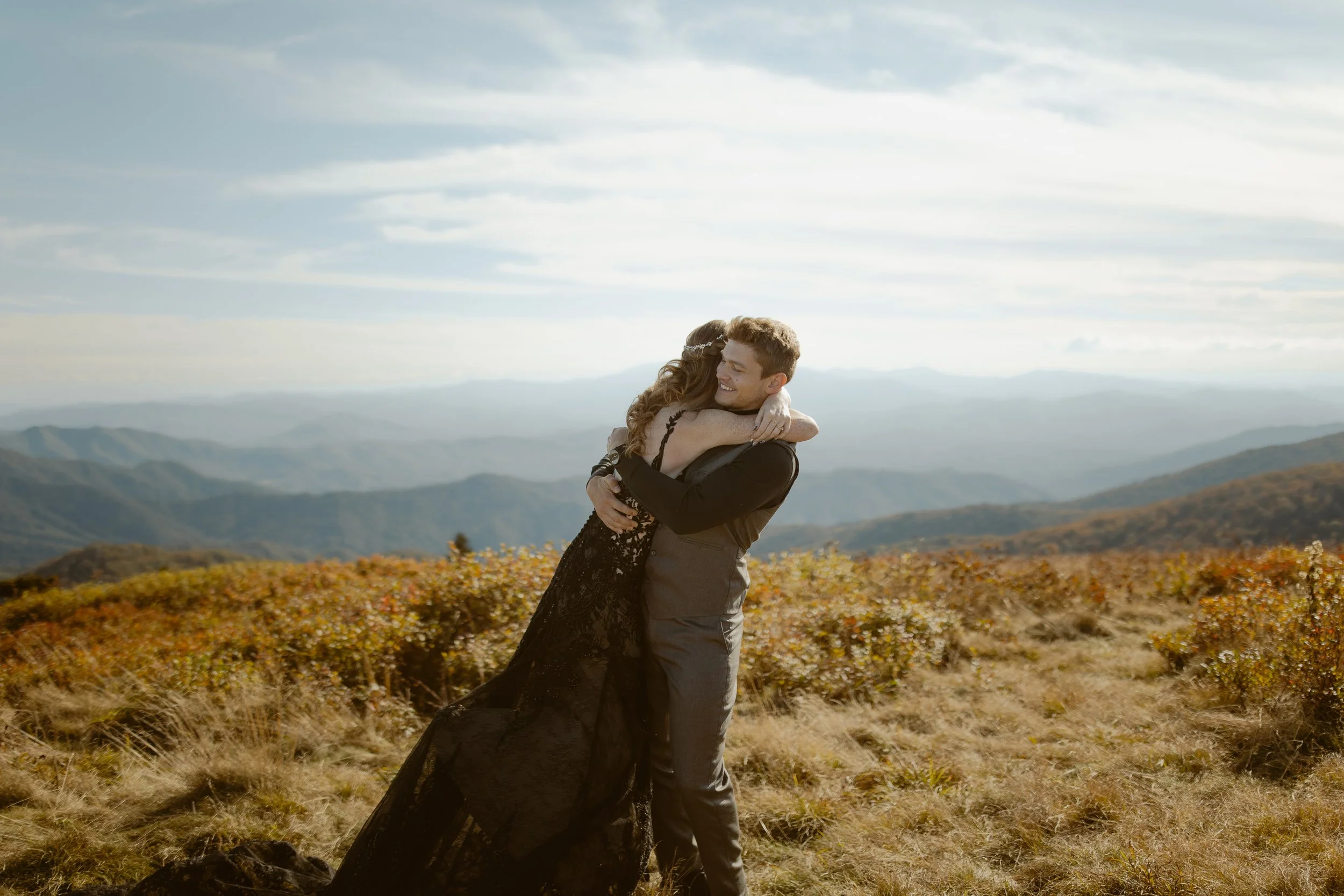 After that, we headed up for their ceremony location. The views were breathtaking, and it was such a magical spot for their vows. They exchange their vows and also do a hand fasting ceremony.We took photos with their friends, then their family went back to their cabin while we continued exploring and capturing more of the mountain adventure. I was. a really nice afternoon in early October, we got the a gorgeous sunset, typically October sky in th Tennessee Mountains.
