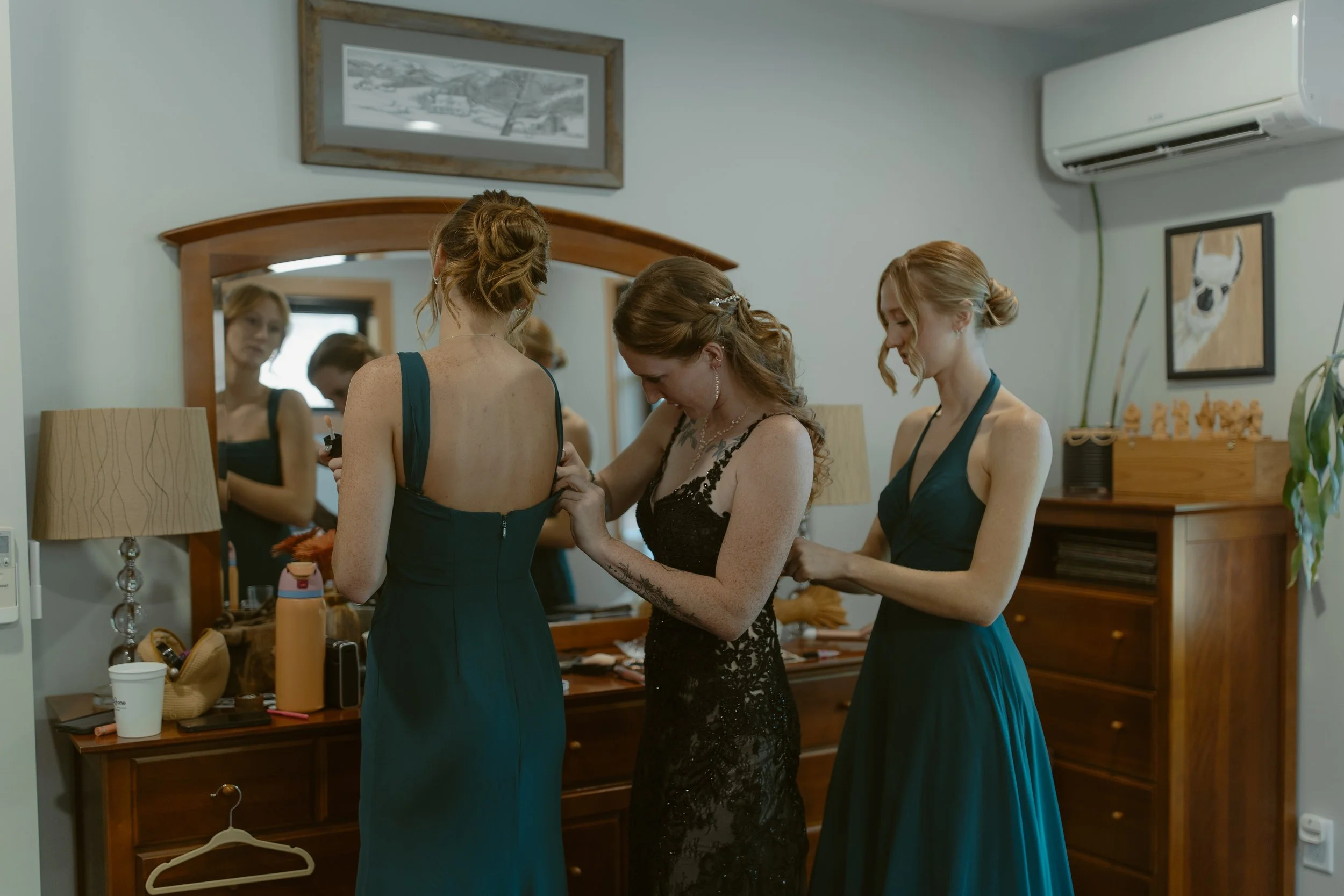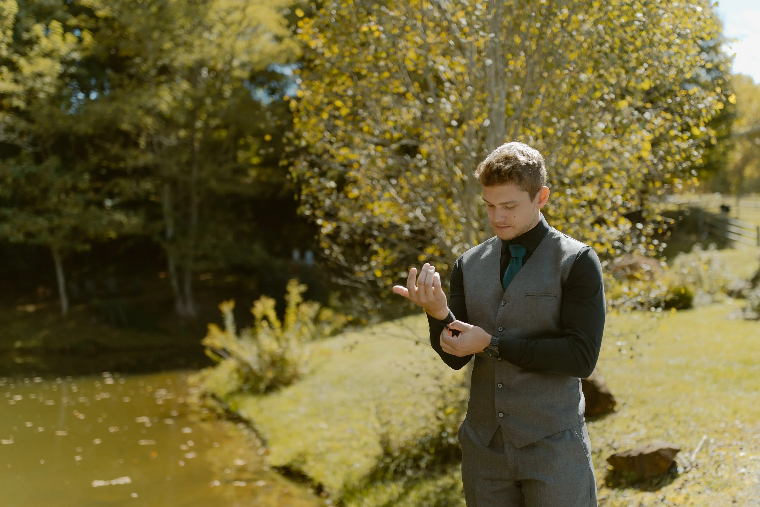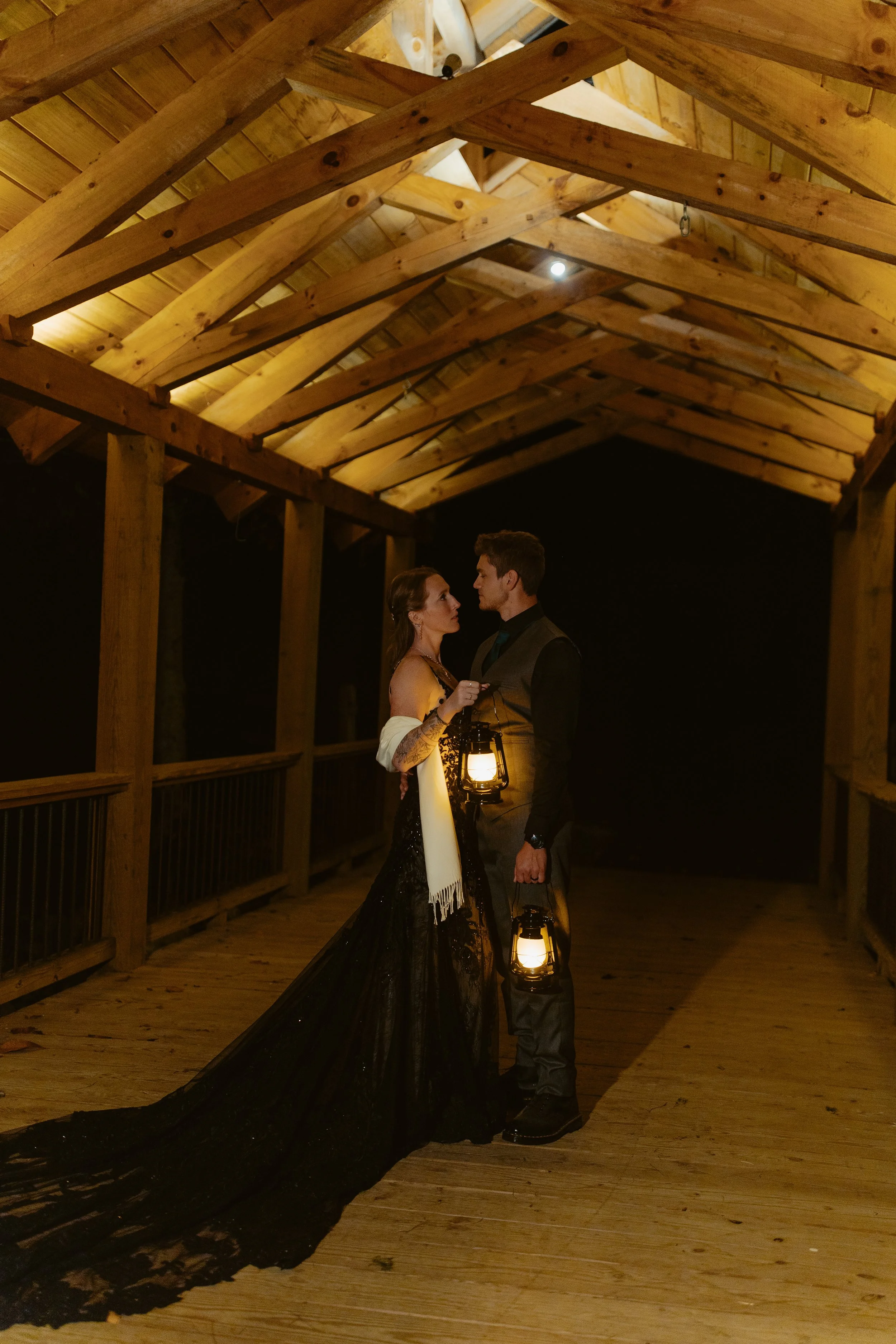 Their day started at their super cute cabin, just minutes from the main spot. We captured all the getting-ready photos and details before their first look at this cute covered birgde that was part of their cabin. It was such a sweet, private moment for them to enjoy together.