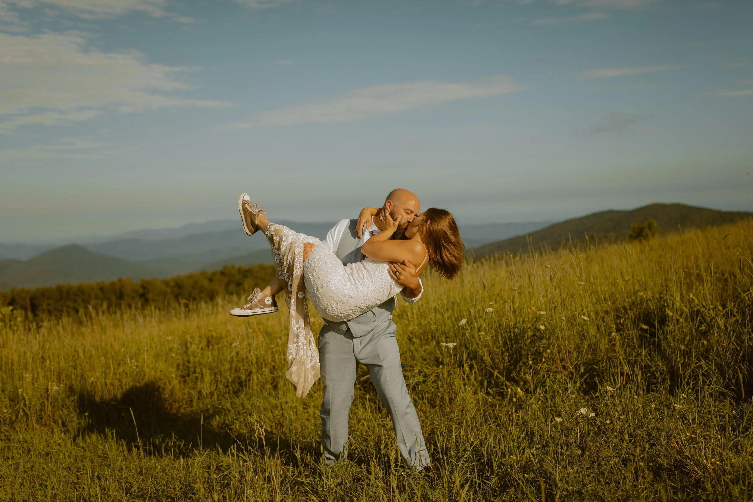 When they first contacted us, they had a few different ideas about how their elopement would look. We talked through some location options, but the moment we showed them this bald, it was an immediate yes. We all agreed that an early morning would be perfect — and for a summer elopement, sunrise is a total dream!